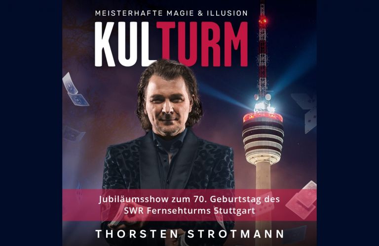 Im Rahmen der Jubiläumswoche zum 70. Geburtstag des SWR Fernsehturms Stuttgart erwartet Sie ein einmaliges Highlight: Magier Thorsten Strotmann präsentiert eine exklusive Sonderaufführung seiner gefeierten Shows – hoch oben auf dem Wahrzeichen der Stadt.