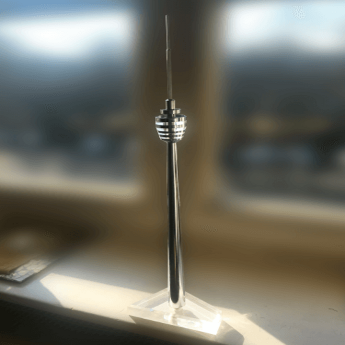 Der Fernsehturm begleitet Karin Altendorfer schon lange - und zwar doppelt und im Miniaturformat. Sie erzählt: "Mein Papa, von Beruf Werkzeugmacher und leidenschaftlicher Tüftler, war so fasziniert vom neugebauten Fernsehturm, dass er kurzerhand zwei Modelle maßstabsgetreu nachgebaut hat. Den Urzustand des Fernsehturms wurde, soviel ich weiß später noch was umgebaut. Diese Modelle begleiten mich nun seit meiner frühesten Kindheit, vielleicht kann ich hier meinem Papa und seinem Können ein kleines Denkmal setzen."